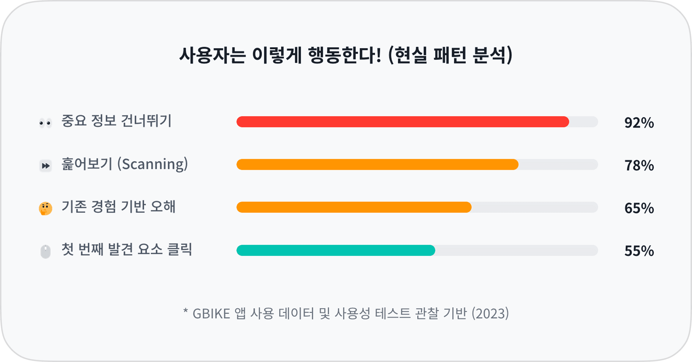 설명 스킵: 대부분의 사용자는 긴 안내문이나 설명을 끝까지 읽지 않습니다. (약 92%!)