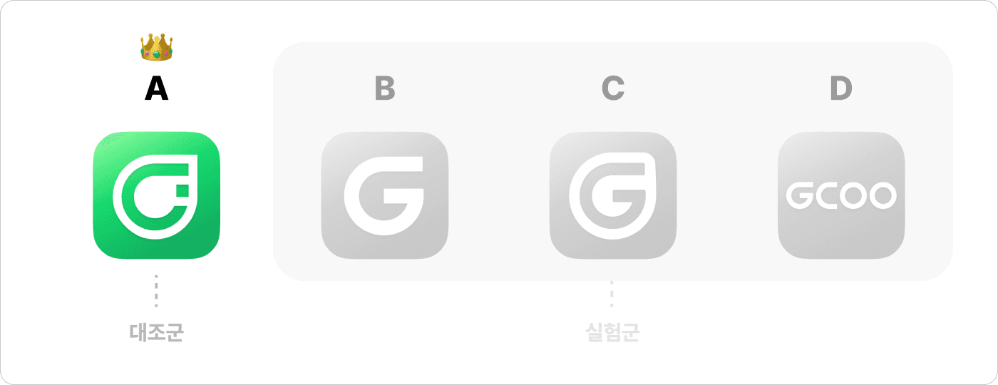지쿠는 앱 아이콘에 심볼로고를 넣어 사용하고 있는데요, 이 심볼 로고가 앱에서 사용빈도가 높지 않았기 때문에 유저에게 얼마나 영향을 주고있는지 알 수 없었습니다. 그래서 몇 가지 시안을 가지고 기존 유저를 대상으로 먼저 테스트 해보기로 했어요. 기존 유저가 앱아이콘이 바뀌어 브랜딩에 혼란을 겪고 앱을 찾기 어려워하면 안되니까요.