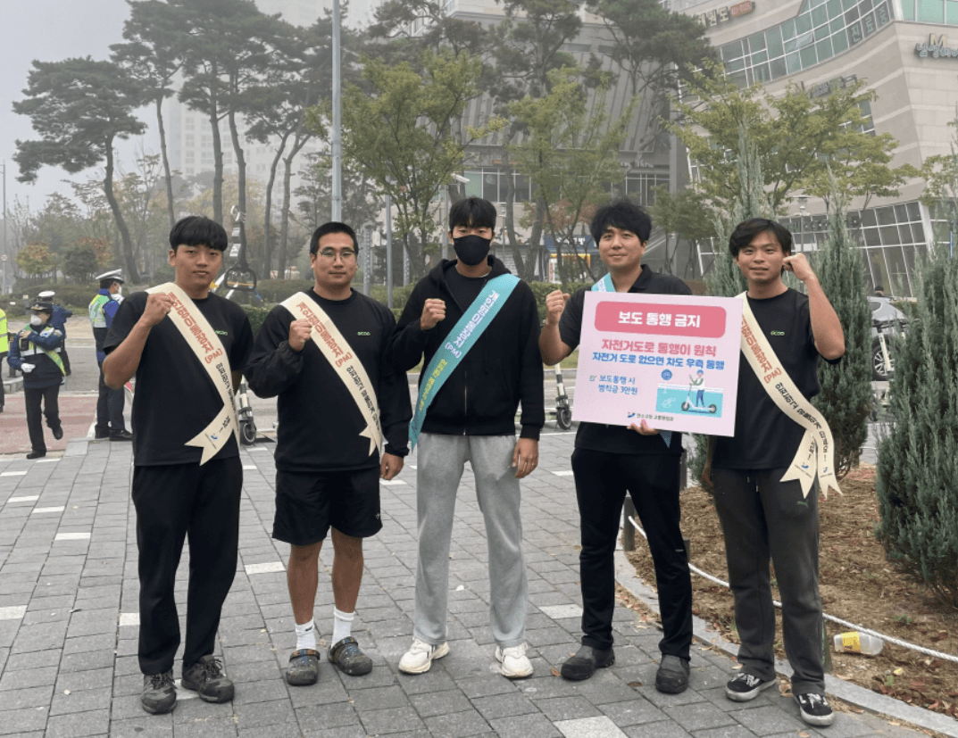 인천 연수구 캠페인은 연수구청 교통행정과, 모범운전자회, 녹색어머니회, 지쿠(GCOO)가 참석하였으며, 안전 캠페인을 통해 △도로교통법 등 관련 법규 현황 △올바른 주차 위치 △보행자 배려 운전 등 개인형 이동장치(전동킥보드) 이용자들이 반드시 숙지해야 할 내용을 집중적으로 홍보했으며, 캠페인 현장에서 PM 관련 주민 민원을 청취하는 시간을 가졌다. 또한, 주요 거점 위주로 이동하며 방치된 기기를 PM 전용 주차장 또는 자전거 거치대 주변 등 반납 권장 구역에 재배치했다.