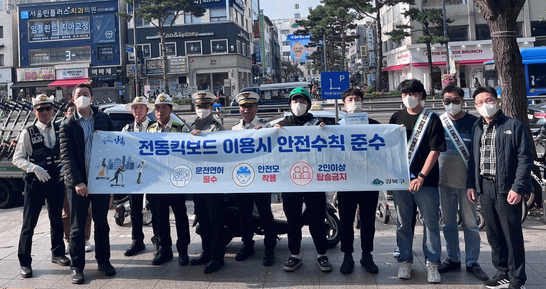 강북구에서는 강북구청 교통행정과와 강북경찰서, 지쿠(GCOO) 등 PM 공유 업체에서 함께 참석했다. 시민들에게 전동킥보드 탑승 시 △운전면허 소지 △안전모 착용 △2인 탑승 금지 △음주운전 금지 등 도로교통법 관련 안전 수칙을 주요 내용으로 하는 홍보물을 배부하였으며, 구청과 PM 공유 업체 간 개인형 이동장치 안전 이용 환경 조성을 위한 지속적인 상호협력에 대한 논의가 이루어졌다.