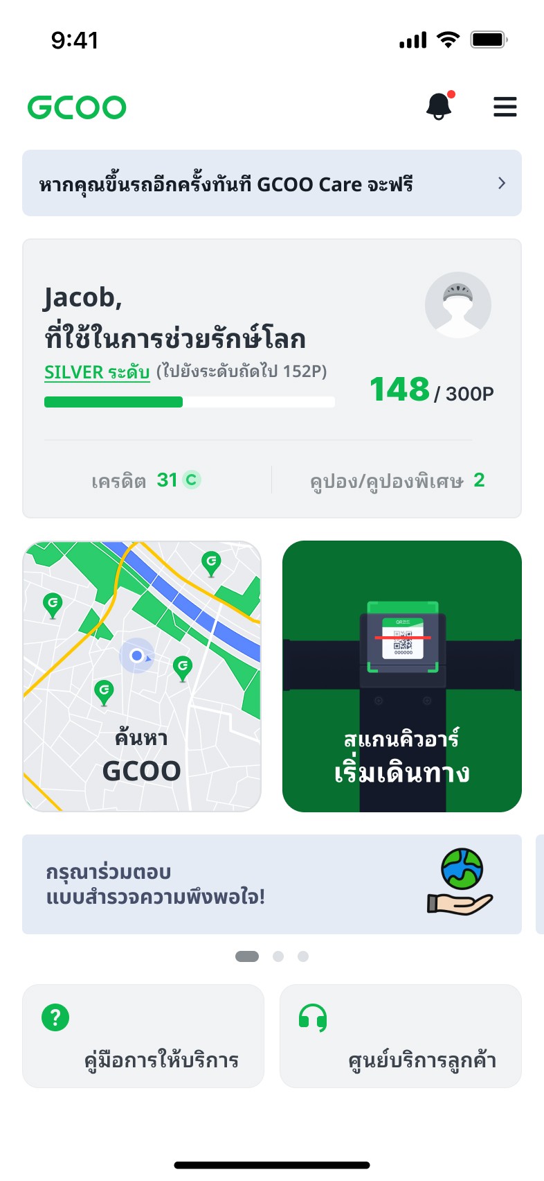 รู้สึกพึงพอใจเวลาใช้งานแอป GCOO เพราะประหยัดกว่าขึ้นแท็กซี่แล้วก็ช่วยปกป้องสิ่งแวดล้อมด้วย ฉันคิดว่านี่เป็นบริการที่เหมาะสมที่สุดแล้วสำหรับการเดินทางระยะสั้น