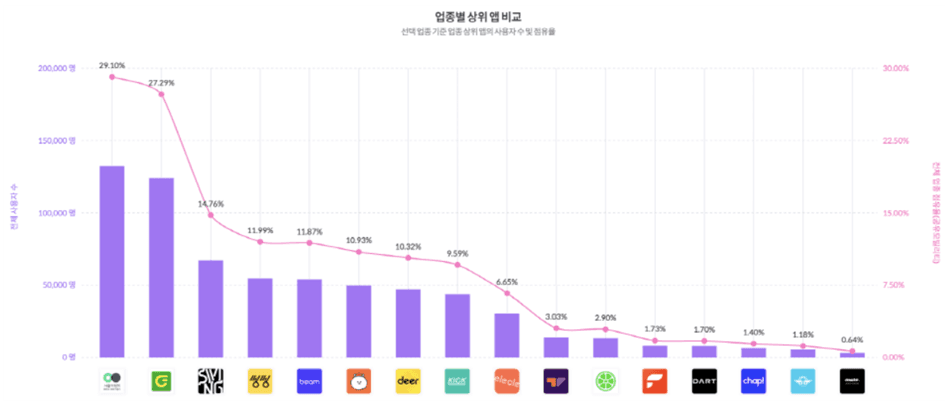 <กราฟการใช้งานแอปการเคลื่อนที่ที่ใช้ร่วมกันโดยผู้ที่มีอายุ 20 ปี (ที่มา: Mobile Index ณ เดือนมิถุนายน)>