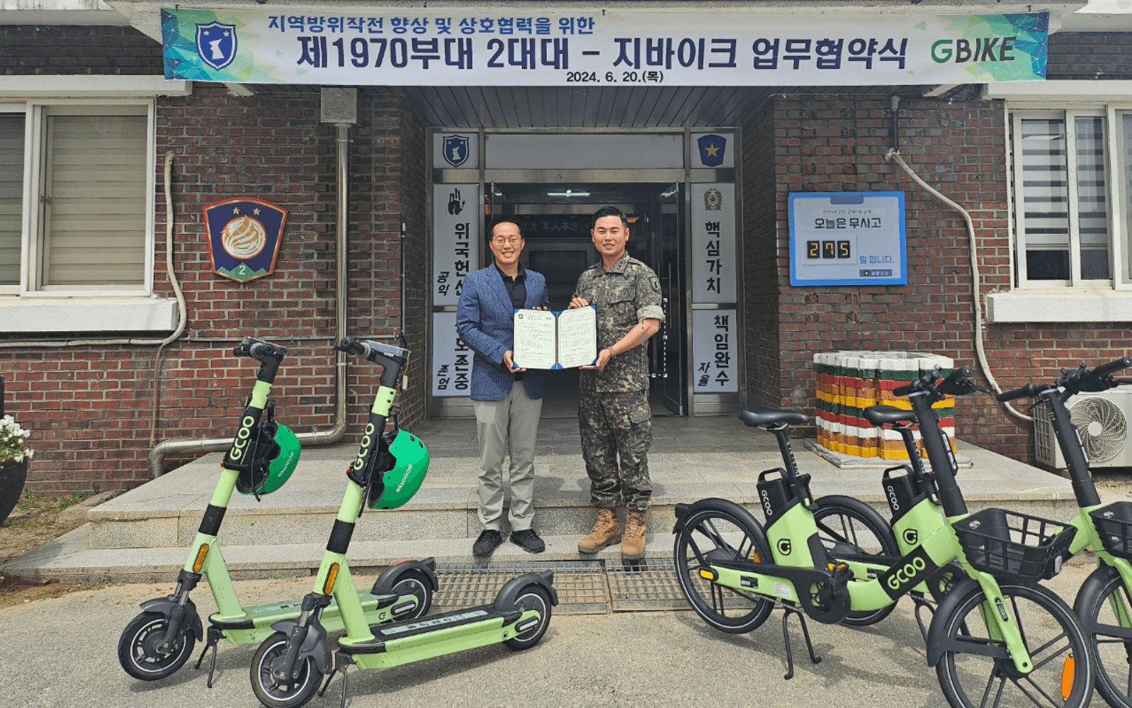 Colonel Kim Hyun-Jong, commander of the Bonghwang Battalion, said, "I am pleased that this agreement will bring innovative changes to the military operations and training of our unit" and "I hope that the mobilized reservists deployed in local defense operations can secure rapid response capabilities and maximize the efficiency of military operations by utilizing GCOO's electric bicycles and electric scooters."